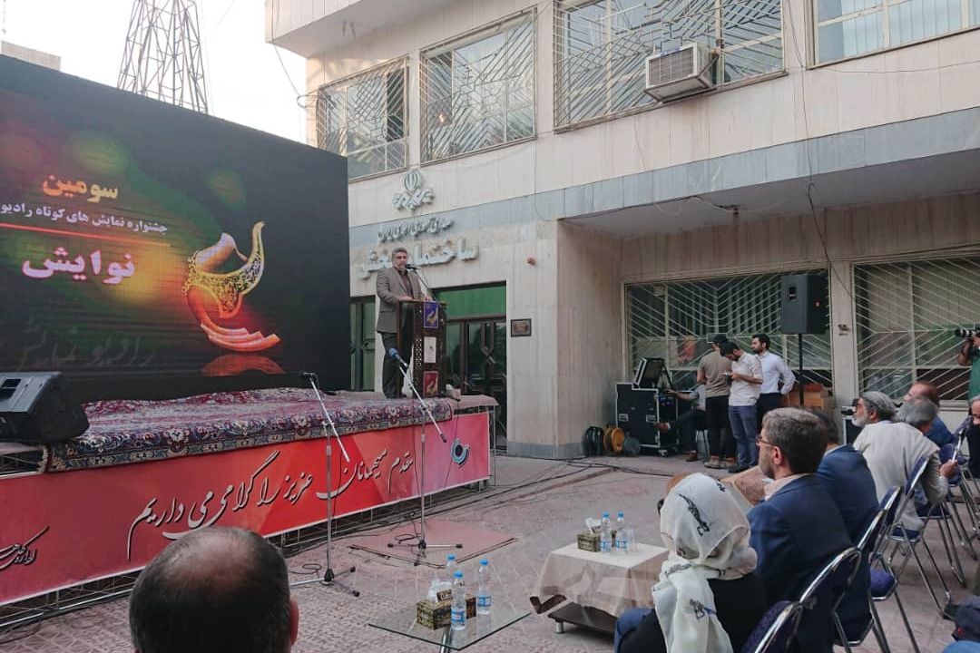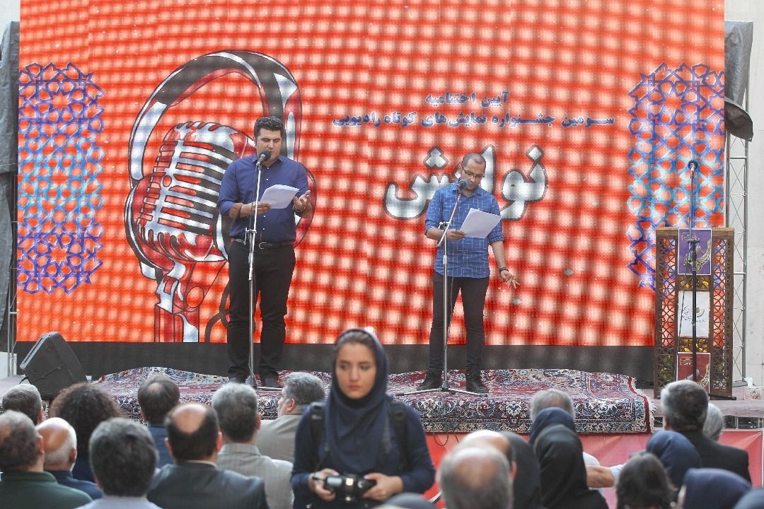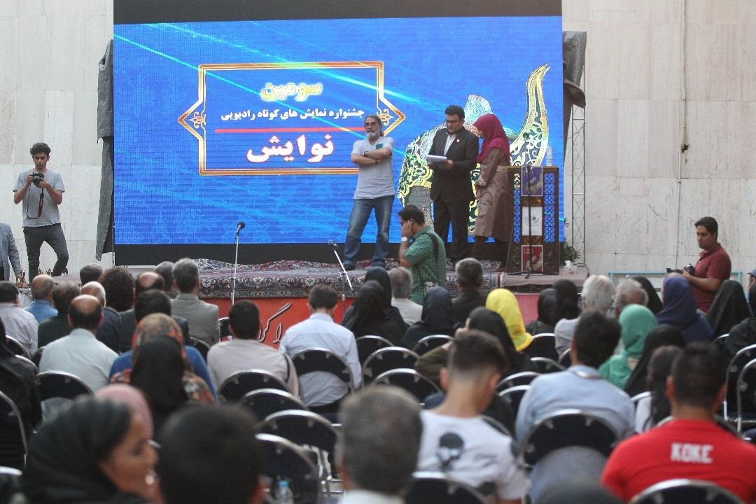 آیین اختتامیه سومین جشنواره نمایش های كوتاه (نوایش) با حضور معاون صدای جمهوری اسلامی ایران، مدیر اداره كل هنرهای نمایشی و رادیو نمایش و با حضور هنرمندان و چهره های مطرح رادیو، تاتر، سینما و تلویزیون در رادیونمایش برگزارشد